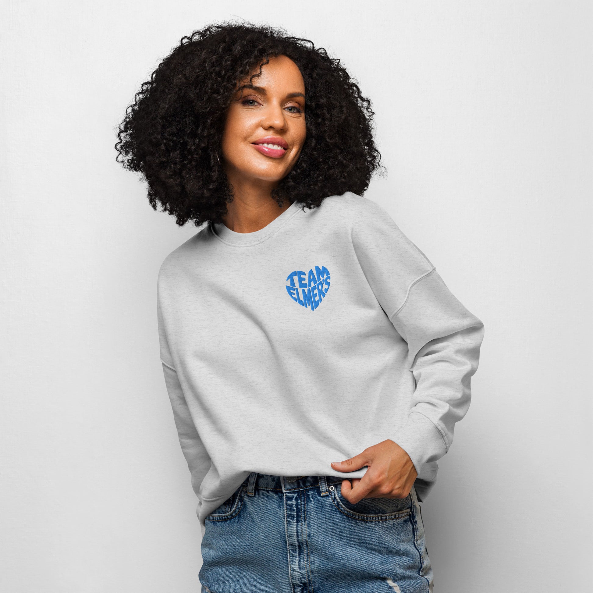 Ladies Embroidered Team Elmer's Heart Crew Neck Sweatshirt